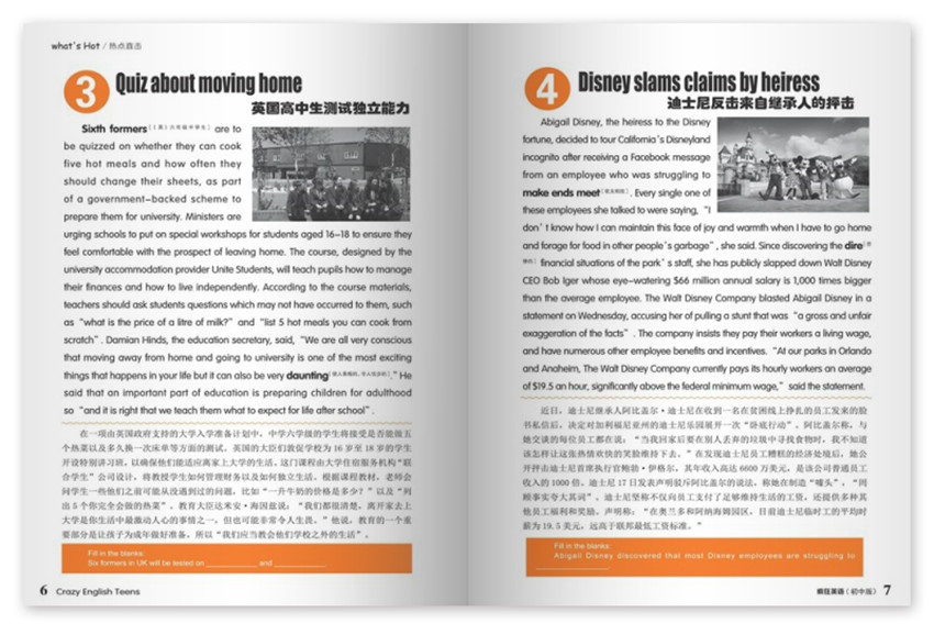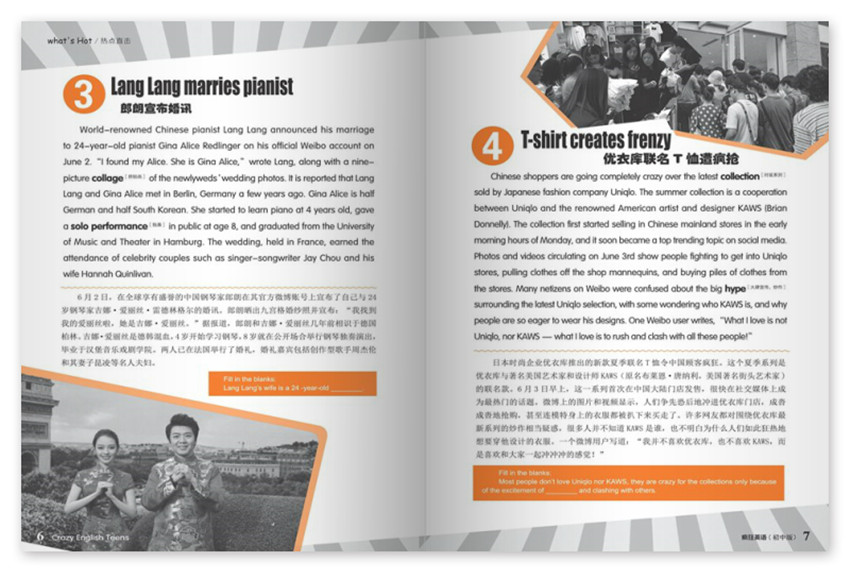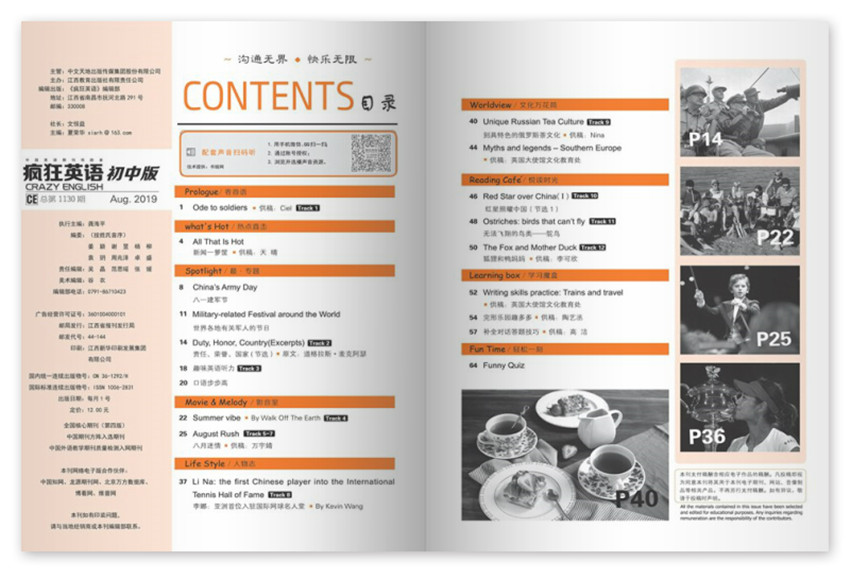 《瘋狂英語》雜志依據(jù)新中學(xué)英語教材,進(jìn)行全面深入的改革,堅(jiān)持“思想性、知識(shí)性、時(shí)尚性、實(shí)用性、趣味性和互動(dòng)性”的辦刊方針。
