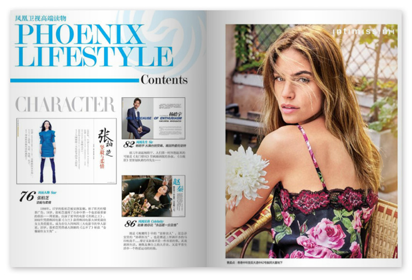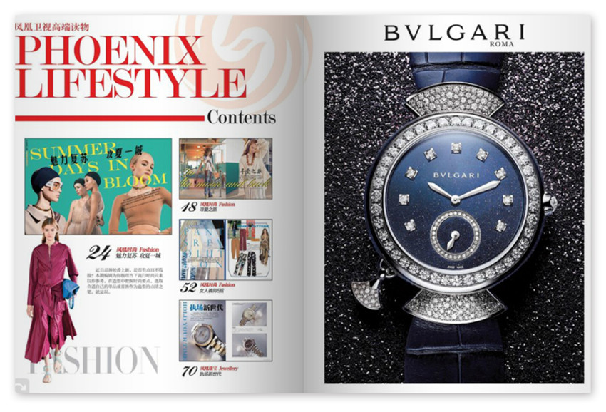 獲得中國國務院新聞辦公室和中國國家新聞出版署特許,通過中國圖書貿易進出口總公司,在中國大陸內地發售的頂級時尚生活月刊。鳳凰衛視董事局主席劉長樂先生親自擔任鳳凰周刊有限公司董事長和出品人。