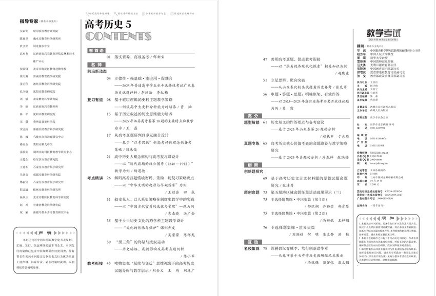 雜志以服務高考改革、服務高中教學為核心,設置“試題研究”“考點縱橫”“教學天地”“百家講壇”等特色欄目。其中,“試題研究”聚焦真題分析與命題規律,如2025年第6期專題解析高考核心考點;“考點縱橫”深度剖析學科重難點,例如化學學科中“原電池與電解池綜合應用”的應試技巧;“教學天地”則通過課堂實戰案例分享教學經驗,如語文學科“小說景物描寫類試題解題策略”的教考對接研究。