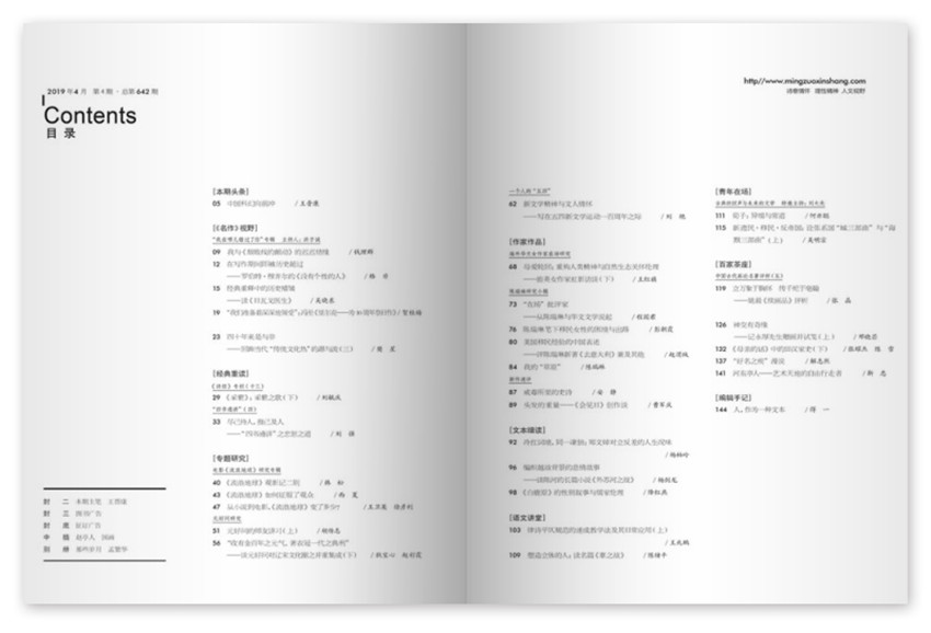 雜志改版后,刊物內容將按上、中、下旬細分為鑒賞版、學術版和中學版,是鑒賞中外古今文學作品的名牌期刊,榮獲首屆、第二屆國家期刊獎,被、新聞出版總署確定為“中國期刊方陣?雙獎期刊”,為擴大刊物容量,滿足讀者需求,經新聞出版行政部門批準。