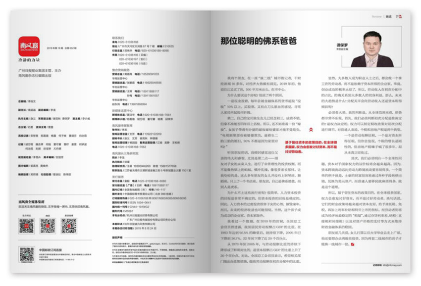 《南風窗》雜志錘煉的主題內容,是中產關注的重大政經話題,例如由幾篇深入報道組成的“封面報道”,其別致的主題:“主義、變革”的宏大視角、“全民水政治”的國計民.....而對于剛發生的重大事件,往往也能給出及時的跟進報道,如美國的《開放天空條約》進度、京東和阿里的爭奪戰,及時而有針對性的新聞,讓你看到的皆是你想看的,了解的皆是你想了解的。