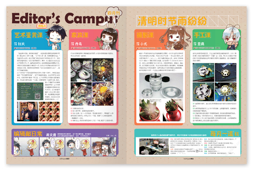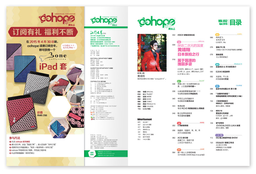 首本針對潮流動漫人和動漫潮流追隨者,并以推廣及發展民族動漫文化,打造國內動漫平臺為目的的動漫潮流讀物,主要欄目:動.播客、包羅漫有、天朝制作、HOTREAD、COS專區等,精彩的參與與體驗(Experience),以年輕的視覺展現近期,潮的動漫咨詢。