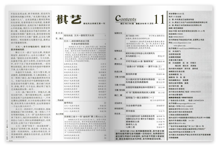 以傳播優(yōu)秀文化,推廣全民閱讀為使命,培養(yǎng)閱讀習慣,不斷提升文化素質(zhì)和生活品質(zhì),并且不斷推動行業(yè)發(fā)展,集創(chuàng)新性,專業(yè)性和知識性于一體的棋藝運動雜志。創(chuàng)刊多年來以其編輯、作者隊伍的專業(yè)性,與生活實際的貼近性,贏得廣大小讀者的喜愛和業(yè)內(nèi)人士的廣泛好評,多方位提升讀者的閱讀品位,適合棋藝運動讀者閱讀。
