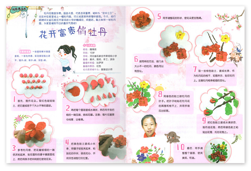 牡丹花雍容華貴、國色天香,代表吉祥富貴,被稱為“花中之王”少年時在家里掛上一幅牡丹畫,可以說是裝布房屋的。今天,我仍跟隨河北省石家莊市草場街小學的魏璢孜,用宣紙、黏土制作一弦牡丹圏,為家里増添節日的喜慶氣氛吧!