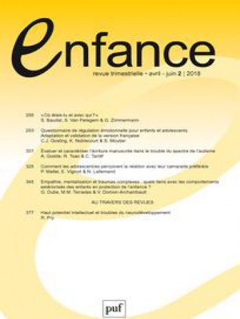 《Enfance》雜志ISSN號:0013-7545,E-ISSN號:1969-6981,國際標準簡稱為ENFANCE,中文名稱為:《童年》。