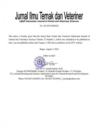 Jurnal Ilmu Ternak Dan Veteriner(2023-2024年最新版數據)