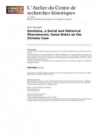《Atelier Du Centre De Recherches Historiques》雜志概括
