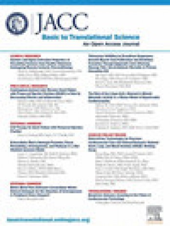 JACC:從基礎(chǔ)到轉(zhuǎn)化科學(xué),是著名的《美國(guó)心臟病學(xué)會(huì)雜志》(JACC)推出的一系列專業(yè)期刊之一。作為一本開放獲取期刊,它充當(dāng)了推進(jìn)轉(zhuǎn)化心血管醫(yī)學(xué)領(lǐng)域的論壇,并充當(dāng)了加速將新科學(xué)發(fā)現(xiàn)轉(zhuǎn)化為新療法的平臺(tái),這些新療法可改善患有或有患心血管疾病風(fēng)險(xiǎn)的患者的臨床結(jié)果。感興趣的主題領(lǐng)域包括臨床前研究;臨床試驗(yàn);個(gè)性化醫(yī)療;新型藥物、設(shè)備和生物制劑;蛋白質(zhì)組學(xué)、基因組學(xué)和代謝組學(xué);以及早期臨床試驗(yàn)方法。