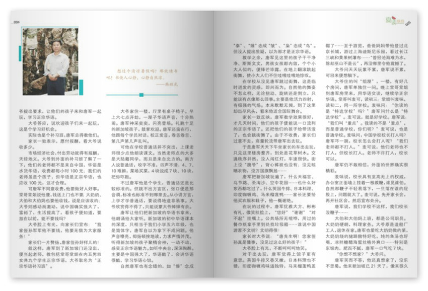 以傳播優(yōu)秀文化,推廣全民閱讀為使命,培養(yǎng)閱讀習(xí)慣,不斷提升文化素質(zhì)和生活品質(zhì),并且不斷推動(dòng)行業(yè)發(fā)展,集創(chuàng)新性,專業(yè)性和知識性于一體的雜志。創(chuàng)刊多年來以其編輯、作者隊(duì)伍的專業(yè)性,與生活實(shí)際的貼近性,贏得廣大小讀者的喜愛和業(yè)內(nèi)人士的廣泛好評,多方位提升讀者的閱讀品位,適合讀者閱讀。