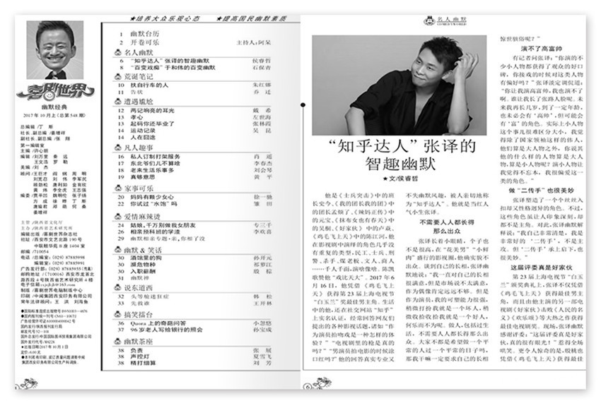 《喜劇世界》雜志創(chuàng)辦于1988年,注重理論聯(lián)系實際,創(chuàng)刊多年來得到了長足發(fā)展,雜志內(nèi)容充實、版式清新,裝幀精美,深受廣大讀者好評。堅持做中國具權(quán)威性的幽默文化倡導(dǎo)者,被讀者稱為“中國幽默批發(fā)中心”。