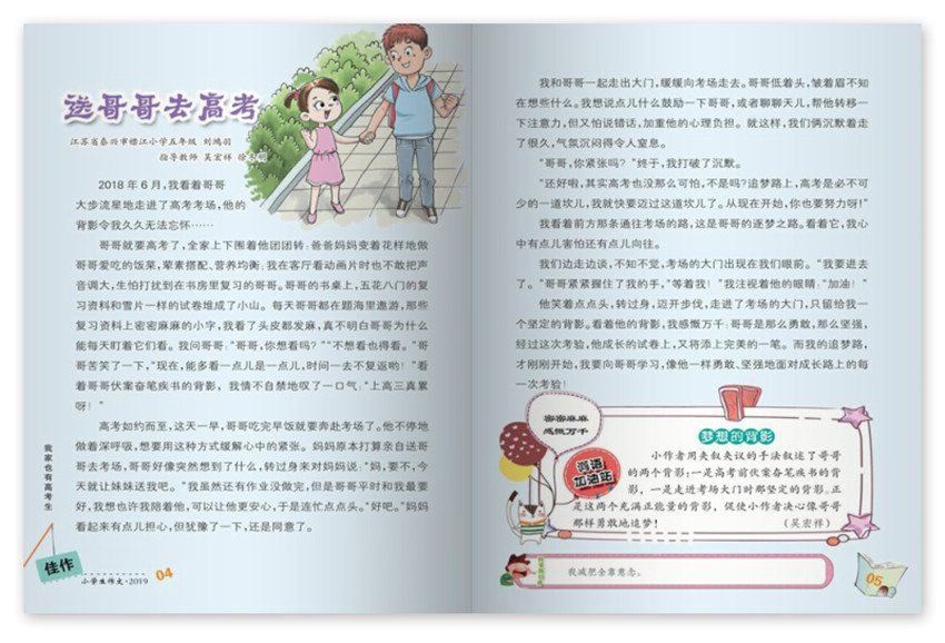 《小學(xué)生作文》特邀專家依照語(yǔ)文新課標(biāo)的要求精選適于學(xué)生閱讀的美文進(jìn)行推薦,全方位提升孩子的閱讀品位,同時(shí)在文后寫(xiě)作練習(xí),引導(dǎo)孩子從讀到寫(xiě),活學(xué)活用。