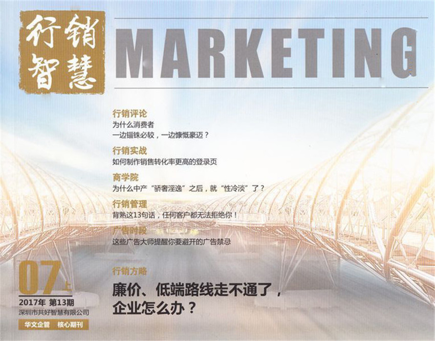 《行銷智慧》雜志內容框架是依據共好與九州夢對國內外數萬家企業的調研和分析,總結出企業營銷常遇到的問題,并用精粹文摘的方式提出解決方案,并對解決方案的優劣做出點評的系統性讀物。