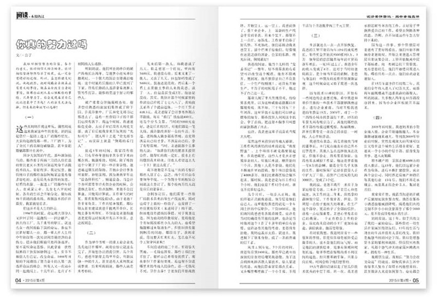 《閱讀》雜志創(chuàng)辦于2005年,注重理論聯(lián)系實際,創(chuàng)刊多年來得到了長足發(fā)展,雜志內(nèi)容充實、版式清新,裝幀精美,深受廣大讀者好評。