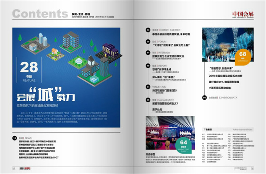 《中國會展》雜志創辦于2000年,注重理論聯系實際,創刊多年來得到了長足發展,雜志內容充實、版式清新,裝幀精美,深受廣大讀者好評。中國會展業具廣泛影響力的核心傳媒。雜志憑借其權威、客觀、公正的新聞報道以及全面、準確、及時的會展資訊,成為海內外會展企業了解中國會展市場的首選媒體。