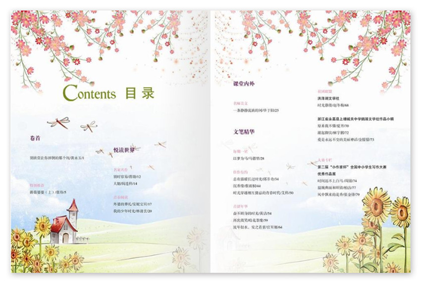 《中國校園文學·小學》主要欄目:經典再現、佳作有約、成長天空、畫夢工廠、教師在線、主題閱讀等。