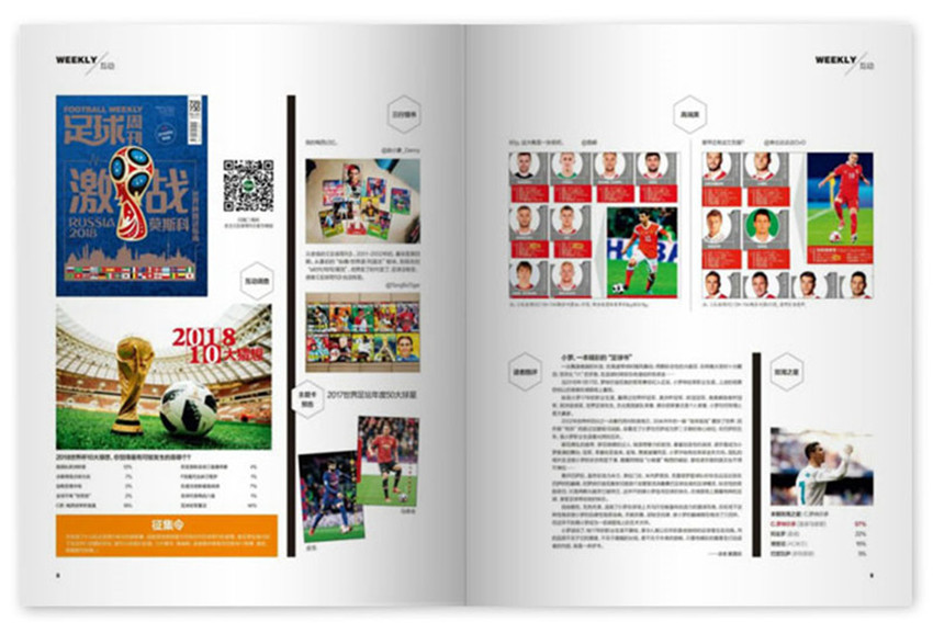 《足球周刊》主編說:現在很多人都喜歡體育、喜歡足球,打開電視看到足球比賽就爆發出一陣陣的喝彩聲。也有很多足球愛好者在問,有沒有那么一本雜志是專門為足球迷們寫的呢,這個答案就是一當然有!《足球周刊》就是這樣一本雜志,來,打開雜志,來感受足球帶來的視覺盛宴!