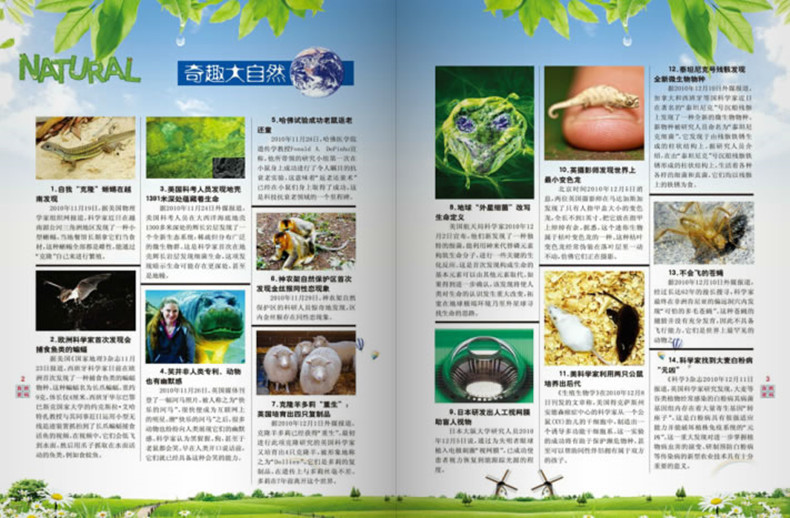 《南腔北調(diào)·自然密碼》雜志創(chuàng)辦于2009年,注重理論聯(lián)系實(shí)際,創(chuàng)刊多年來得到了長足發(fā)展,雜志內(nèi)容充實(shí)、版式清新,裝幀精美,深受廣大讀者好評。一幅為自然勾勒的肖像畫,是一本為孩子打造的科普書,它專為正處于小學(xué)高年級階段的孩子們量身定制,無論是漫游海底聽一聽鯨魚的悄悄話,還是深入山林與虎大王結(jié)為摯友,甚至穿越遠(yuǎn)古與未知的生靈共赴一場旅行。