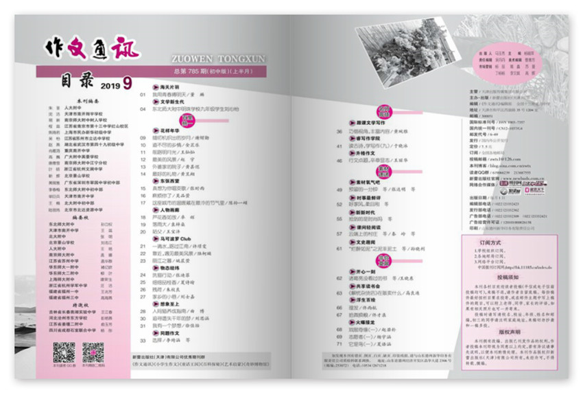 《作文通訊.初中版》主要欄目:作文精粹、閱讀空間、作文速遞等。